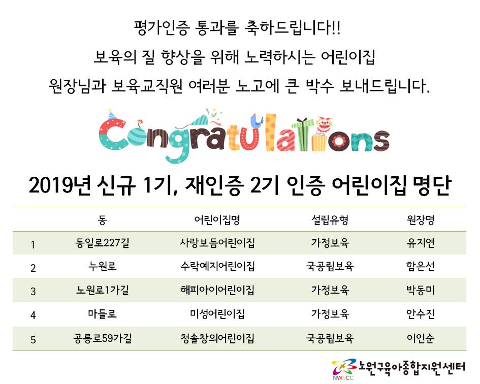 2019³â ½Å±Ô 1±â, ÀçÀÎÁõ 2±â Æò°¡ÀÎÁõ ¾î¸°ÀÌÁý ¸í´Ü(2019.6.15¹ßÇ¥)