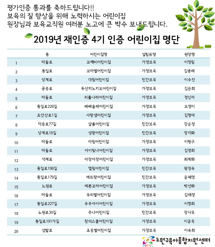 2019³â ÀçÀÎÁõ 4±â Æò°¡ÀÎÁõ ¾î¸°ÀÌÁý ¸í´Ü(2019.7.15¹ßÇ¥)