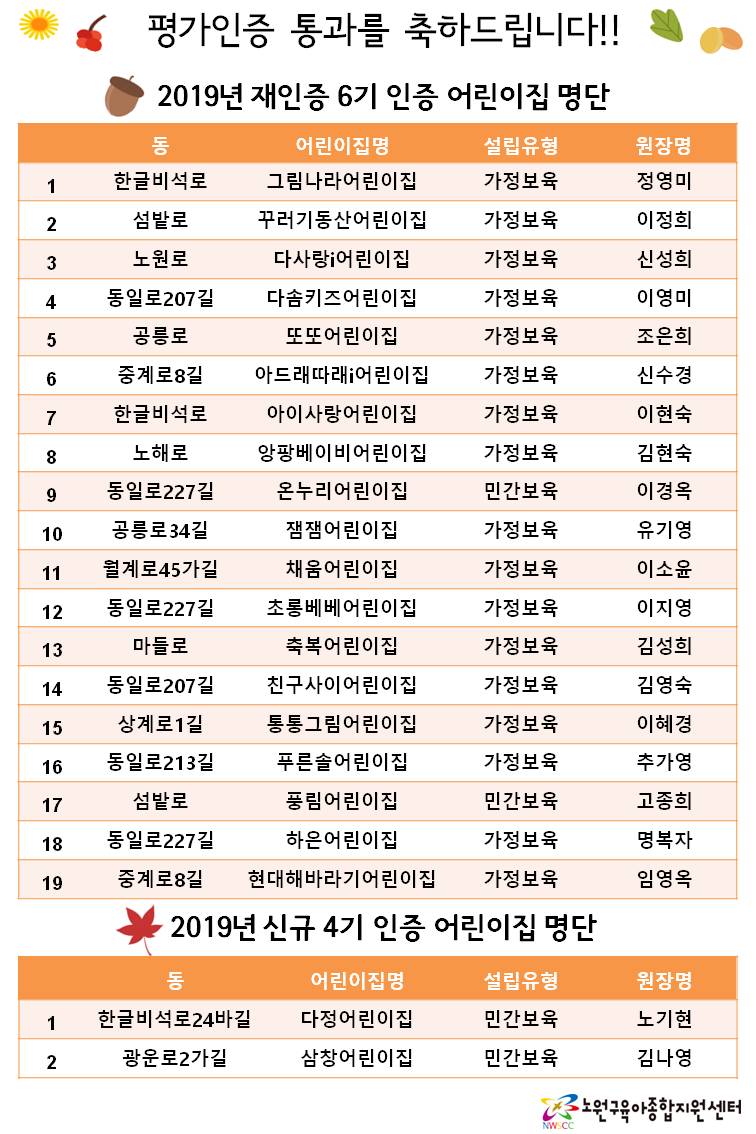 2019³â ½Å±ÔÀÎÁõ 4±â ÀçÀÎÁõ 6±â Æò°¡ÀÎÁõ ¾î¸°ÀÌÁý ¸í´Ü(2019.9.15¹ßÇ¥)