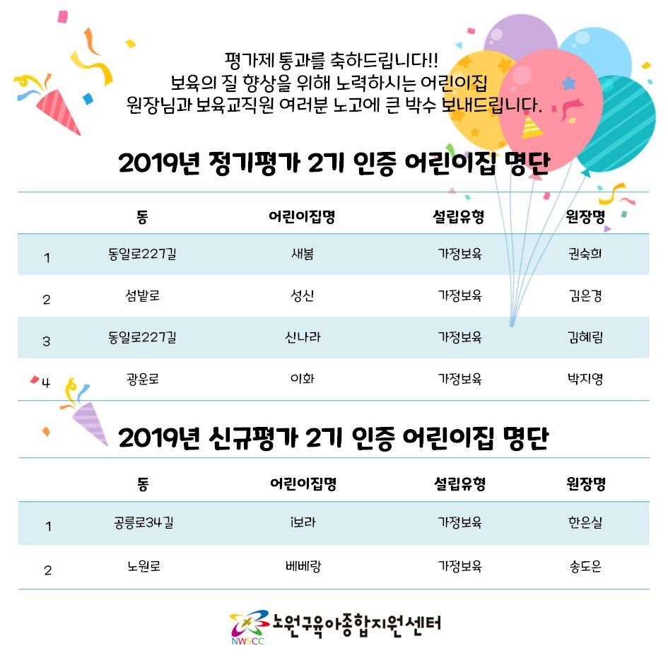 2019³â ½Å±ÔÆò°¡ 2±â Á¤±âÆò°¡ 2±â Æò°¡ÀÎÁõ ¾î¸°ÀÌÁý ¸í´Ü(2019.12.16¹ßÇ¥)