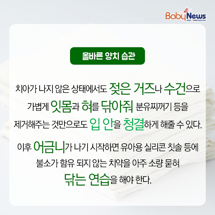 ±¸° °Ç°Àº Àü½Å °Ç°¿¡ ¿µÇâÀ» Áֱ⠶§¹®¿¡ ¿Ã¹Ù¸¥ ±¸° °ü¸®¸¦ ÅëÇØ ±¸°À» Ç×»ó °Ç°ÇÏ°Ô À¯ÁöÇÏ´Â °ÍÀÌ Áß¿äÇÏ´Ù. À¯¾ÆÀÇ °æ¿ì ¸ðÀ¯°¡ ¾Æ´Ñ ºÐÀ¯ ¼öÀ¯ ¶Ç´Â ÀÌÀ¯½ÄÀ» ¼·ÃëÇϸ鼺ÎÅÍ ±¸°¿¡ À½½Ä¹° Â±â°¡ ³²¾Æ À¯ÇرÕÀÌ ¹ø½ÄÇϸ鼺ÎÅÍ ´Ù¾çÇÑ ¹®Á¦°¡ ¹ß»ýÇÑ´Ù. ±×·¯³ª ¾ö¸¶°¡ ÇØÁÖ´Â ¾çÄ¡Áú¸¸À¸·Î´Â ¾ÆÀÌÀÇ ÀÔ¼ÓÀÌ ¿Ïº®ÇÏ°Ô ±ú²ýÇØÁöÁö ¾Ê´Â´Ù. ¾ÆÀÌÀÇ Ä¡¾Æ, ¾î¶»°Ô °ü¸®ÇØÁà¾ß ÇÒ±î? À±Áö¾Æ ±âÀÚ