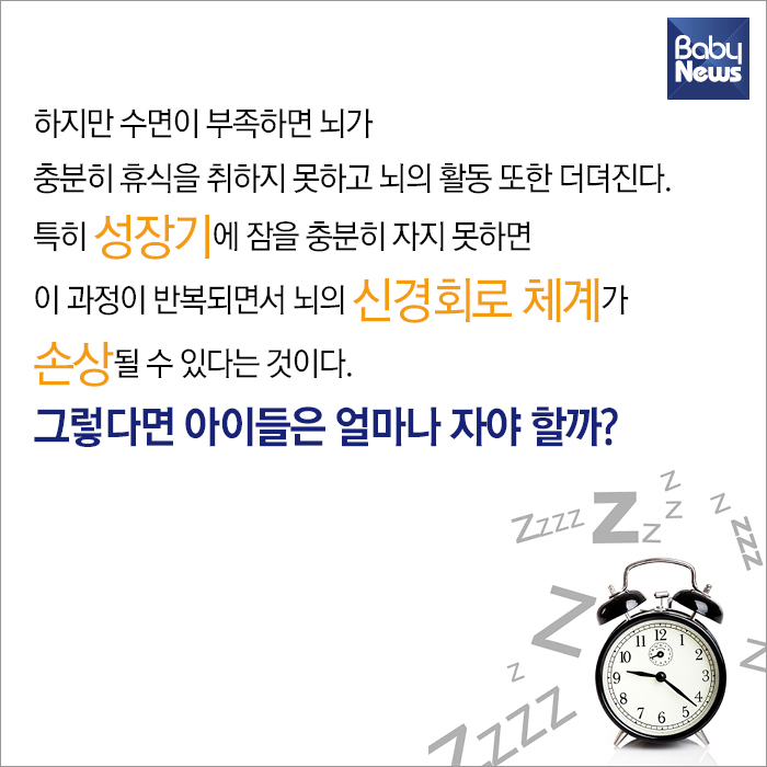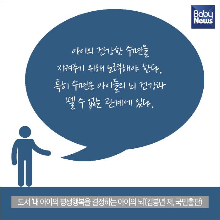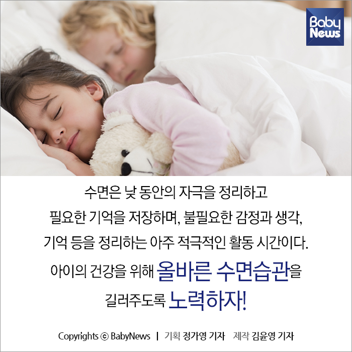 ¿¾¸»¿¡ 'ÀáÀÌ º¸¾à'À̶ó´Â ¸»ÀÌ ÀÖ´Ù. ÃæºÐÇÑ ÀáÀº ¾ÆÀÌÀÇ ¼ºÀå¿¡ Å« ¿µÇâÀ» ¹ÌÄ£´Ù. ¾î¸± ¶§ºÎÅÍ Ç« ÀÚ´Â ½À°üÀ» µé¿©¾ß¸¸ ¾ÆÀ̵éÀº °Ç°ÇÏ°Ô ÀÚ¶ó°í Á¤¼ÀûÀ¸·Îµµ ¾ÈÁ¤µÈ´Ù. ƯÈ÷ Àü¹®°¡µéÀº ¿Ã¹Ù¸¥ ¼ö¸é½À°üÀÌ ¾ÆÀÌÀÇ ³ú¸¦ ¹ß´Þ½ÃŲ´Ù°í °Á¶ÇÑ´Ù. µµ¼ ¡®³» ¾ÆÀÌÀÇ Æò»ýÇູÀ» °áÁ¤ÇÏ´Â ¾ÆÀÌÀÇ ³ú¡¯(±èºØ³â Àú, ±¹¹ÎÃâÆÇ)¿¡¼ Á¦½ÃÇϰí ÀÖ´Â ¾ÆÀ̸¦ À§ÇÑ ¼ö¸é »ó½ÄÀ» »ìÆìºÃ´Ù.