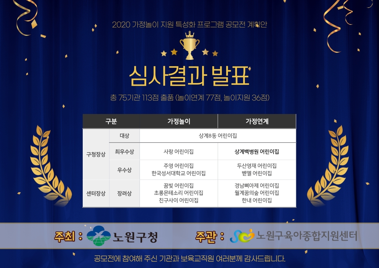 [2020³â °¡Á¤³îÀÌ Áö¿ø ÇÁ·Î±×·¥ °ø¸ðÀü ½É»ç°á°ú ¹ßÇ¥] ¡°³î.ÀÚ! ¿ô/ÀÚ!¡± ³î¸é¼ ÀÚ¶ó¸é, ¿ôÀ½²É Ȱ¦! Àڽۨ À¸¾³!