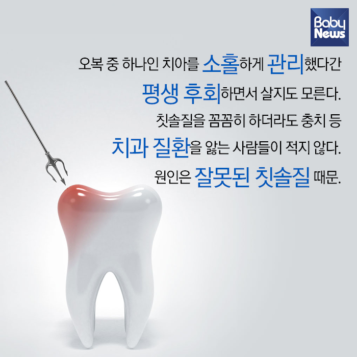 ¿Àº¹ Áß ÇϳªÀÎ Ä¡¾Æ¸¦ ¼ÒȦÇÏ°Ô °ü¸®Çß´Ù°£ Æò»ý ÈÄȸÇÏ¸é¼ »ìÁöµµ ¸ð¸¥´Ù. Ä©¼ÖÁúÀ» ²Ä²ÄÈ÷ ÇÏ´õ¶óµµ ÃæÄ¡ µî Ä¡°ú ÁúȯÀ» ¾Î´Â »ç¶÷µéÀÌ ÀûÁö ¾Ê´Ù. ¿øÀÎÀº À߸øµÈ Ä©¼ÖÁú ¶§¹®. ½ÄǰÀǾàǰ¾ÈÀüó°¡ Á¦½ÃÇÑ Ä¡¾Æ °Ç°À» À§ÇÑ Ä©¼Ö, Ä¡¾à, ±¸±Û¾×, Ʋ´Ï ¼¼Á¤Á¦ µîÀÇ ¿Ã¹Ù¸¥ »ç¿ë¹ýÀ» Ä«µå´º½º·Î ¾Ë¾Æº¸ÀÚ.