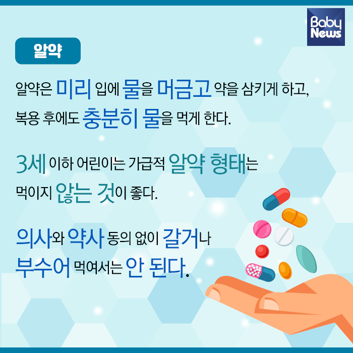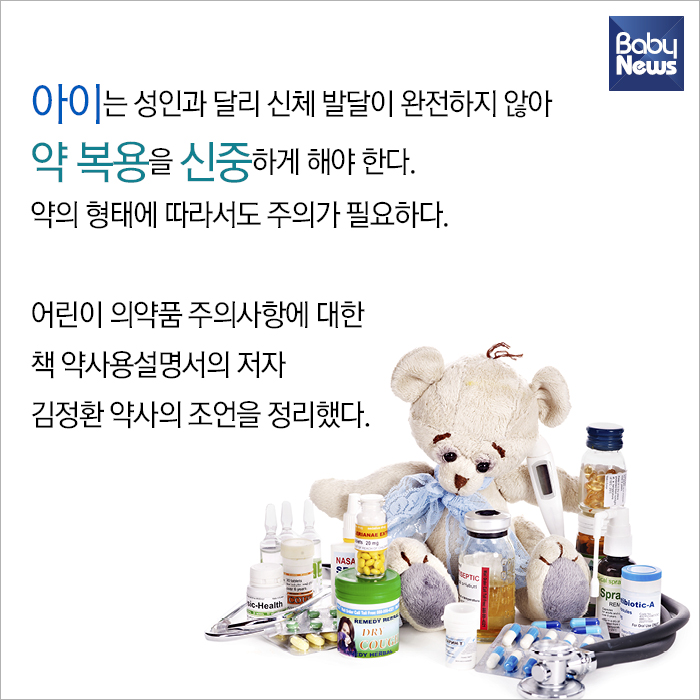 ¾ÆÀÌ´Â ¼ºÀΰú ´Þ¸® ½Åü ¹ß´ÞÀÌ ¿ÏÀüÇÏÁö ¾Ê¾Æ ¾à º¹¿ëÀ» ½ÅÁßÇÏ°Ô ÇØ¾ß ÇÑ´Ù. ¾àÀÇ ÇüÅ¿¡ µû¶ó¼µµ ÁÖÀǰ¡ ÇÊ¿äÇÏ´Ù. Ã¥ '¾à »ç¿ë¼³¸í¼'(±èÁ¤È¯ Àú, Áö½Ää³Î)¸¦ Âü°íÇØ ¾î¸°ÀÌ ÀǾàǰ ÁÖÀÇ»çÇ×À» Á¤¸®Çß´Ù.