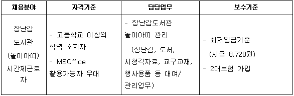Àå³°¨µµ¼°ü(³îÀ̾ƶì) ½Ã°£Á¦±Ù·ÎÀÚ ¸ðÁý °ø°í