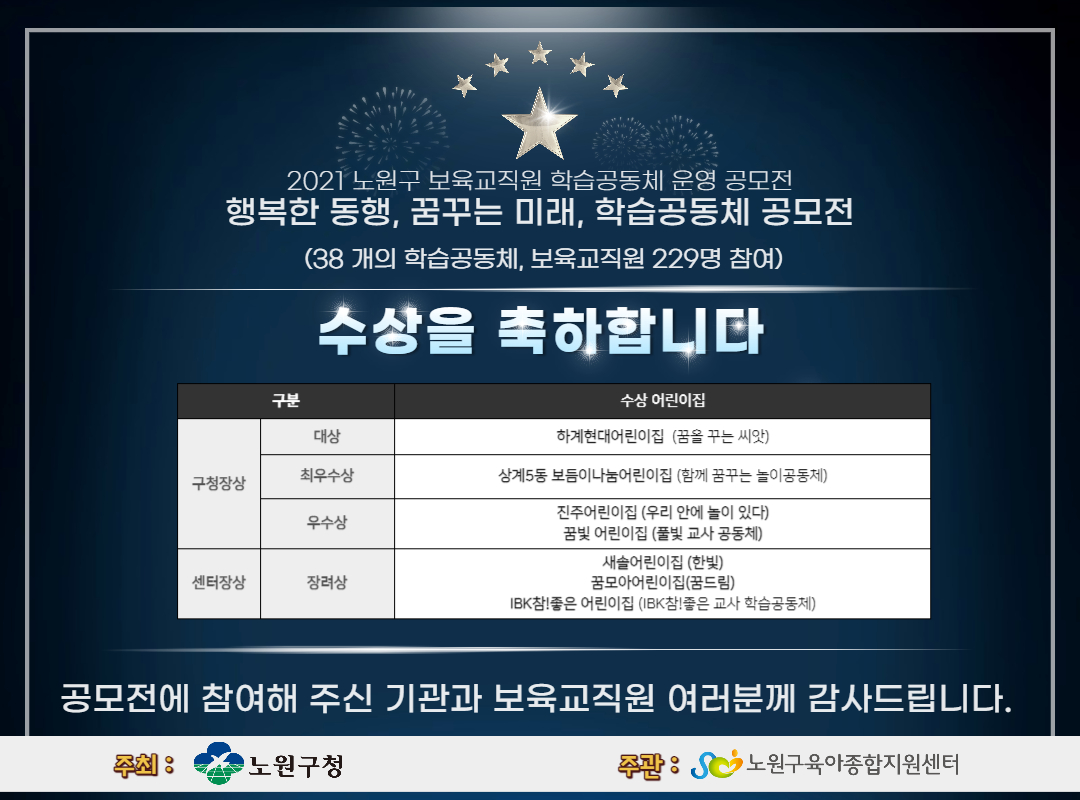 [2021 ³ë¿ø±¸ º¸À°±³Á÷¿ø ÇнÀ°øµ¿Ã¼ ¿î¿µ °ø¸ðÀü ½É»ç°á°ú ¹ßÇ¥ ] ÇູÇÑ µ¿Çà, ²Þ²Ù´Â ¹Ì·¡, ÇнÀ°øµ¿Ã¼ °ø¸ðÀü