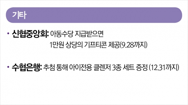 ¸Å´Þ 10¸¸¿ø¾¿ Áö±ÞµÇ´Â ¾Æµ¿¼ö´çÀ» ¹ÞÀ¸·Á¸é ºÎ¸ð°¡ ¼ö±Þ °èÁ¸¦ µî·ÏÇØ¾ßÇϴµ¥¿ä. ÀÌ¿ÕÀÌ¸é ±Ý¸®µµ ³ô°í, ÇýÅõµ ¸¹Àº ÀºÇàÀ¸·Î ¼±ÅÃÇÏ´Â °ÍÀÌ ¾î¶³±î¿ä. <¾ö¸¶µ·º¸±â>¿¡¼ ¾Æµ¿¼ö´ç ¼ö±ÞÀÚ¸¦ À§ÇÑ ÀºÇະ ÇýÅà ÇýÅÃÀ» Á¤¸®Çß½À´Ï´Ù.