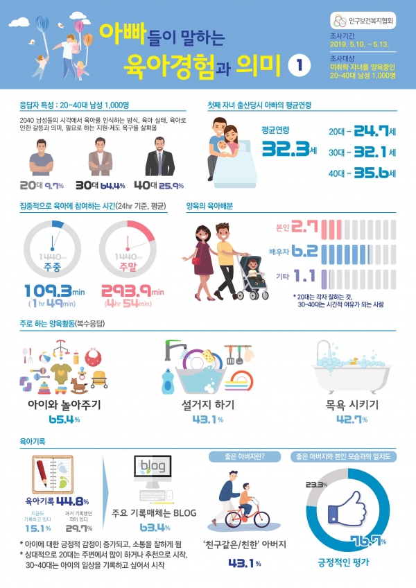 Àα¸º¸°Çº¹ÁöÇùȸ(ȸÀå ½Å¾ðÇ×)´Â ¡®¾ÆºüµéÀÌ ¸»ÇÏ´Â À°¾Æ°æÇè°ú Àǹ̡¯¸¦ ÁÖÁ¦·Î ÇÑ 2019³â 1Â÷ ÀúÃâ»êÀνÄÁ¶»ç¸¦ ½Ç½ÃÇÑ °á°ú, ÀÀ´äÀÚÀÇ 43.1%°¡ 'Ä£±¸ °°Àº¡¤Ä£ÇÑ' ¾Æ¹öÁö°¡ ÁÁÀº ¾Æ¹öÁö¶ó°í »ý°¢Çϰí ÀÖ¾ú´Ù°í 16ÀÏ ¹àÇû´Ù.
