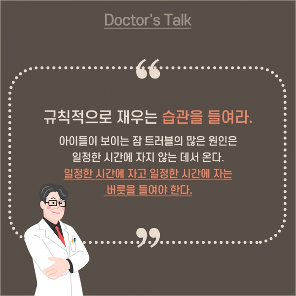 ³·ÀáÀ» Á¦´ë·Î ÀÚ´Â ¾ÆÀ̰¡ ¹ãÀáµµ Àß ÀÜ´Ù. ¿ì¸® ¾ÆÀÌ ³·Àá ¾î¶»°Ô ü°èÀûÀ¸·Î °ü¸®ÇÒ ¼ö ÀÖÀ»±î? ±è¿µÈÆ °¡Å縯ÀÇ´ë ÀÇÁ¤ºÎ¼º¸ðº´¿ø ¼Ò¾ÆÃ»¼Ò³â°ú ±³¼öÀÇ Á¶¾ðÀ» µé¾îº¸ÀÚ.