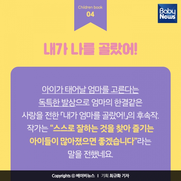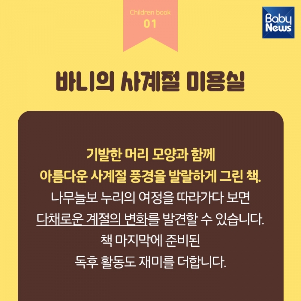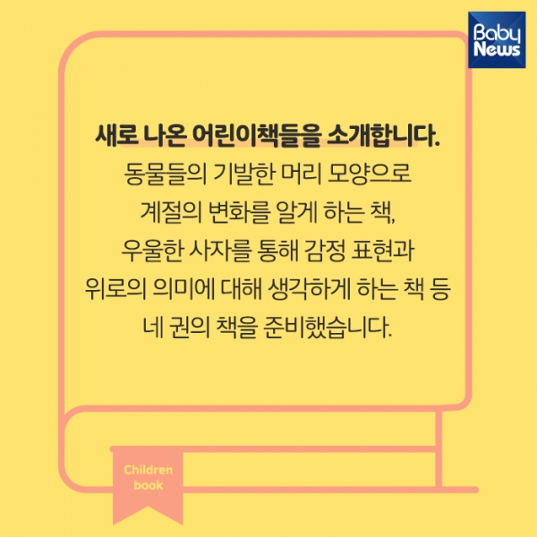 »õ·Î ³ª¿Â ¾î¸°ÀÌÃ¥µéÀ» ¼Ò°³ÇÕ´Ï´Ù. ±â¹ßÇÑ ¸Ó¸® ¸ð¾çÀ¸·Î °èÀýÀÇ º¯È¸¦ ¾Ë°Ô Çϴ å, ¿ì¿ïÇÑ »çÀÚ¸¦ ÅëÇØ °¨Á¤ Ç¥Çö°ú À§·ÎÀÇ Àǹ̿¡ ´ëÇØ »ý°¢Çϴ å, ¼¼»ó¿¡ Çϳª»ÓÀÎ ¾ÆºüÀÇ ºñ¹Ð µî ³× ±ÇÀÇ Ã¥ÀÔ´Ï´Ù.